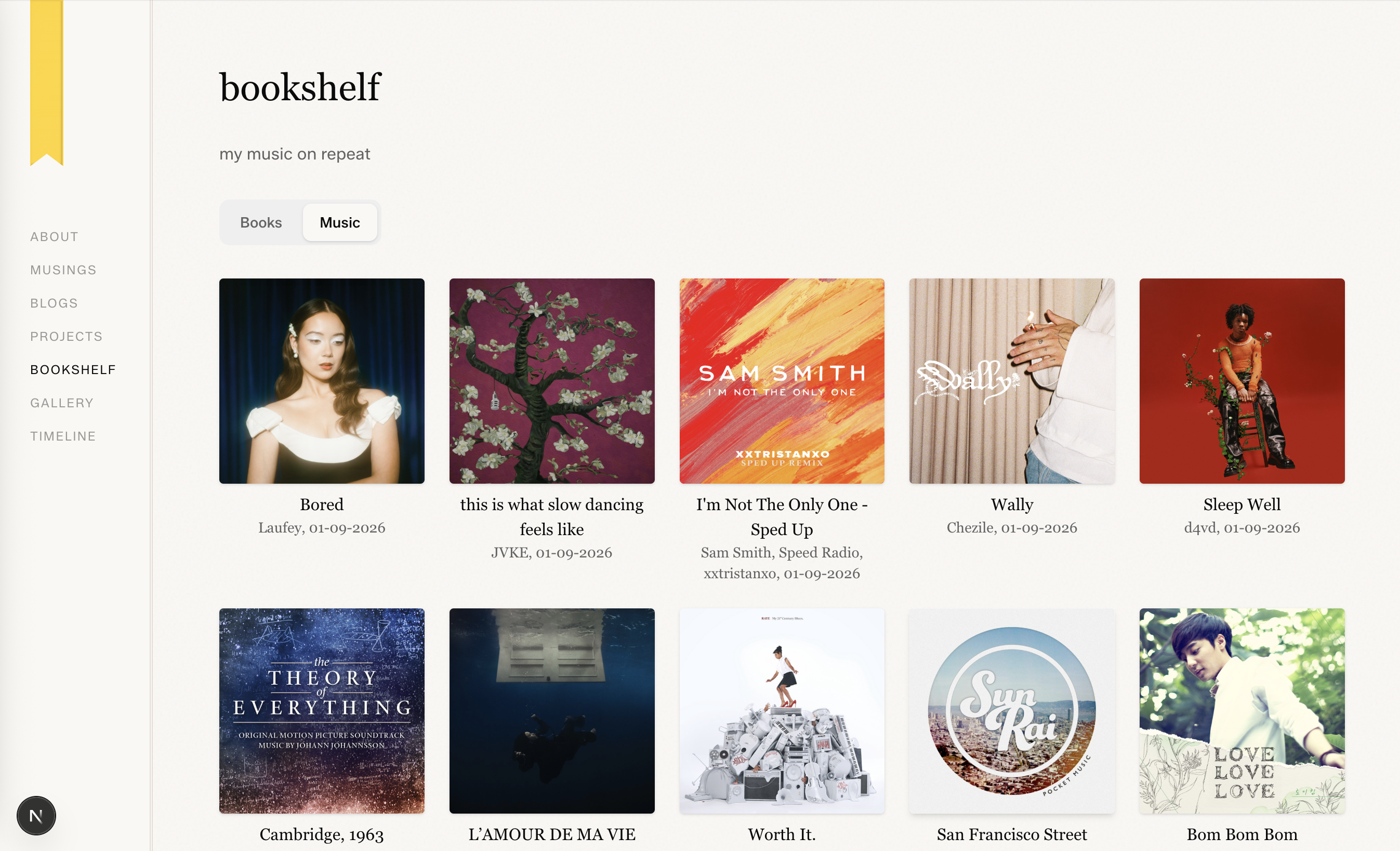 I also wanted for the longest time to have this bookshelf page that reflected my reviews on Goodreads, as well as having my most listened to Spotify music/audio soundtracks on my website.