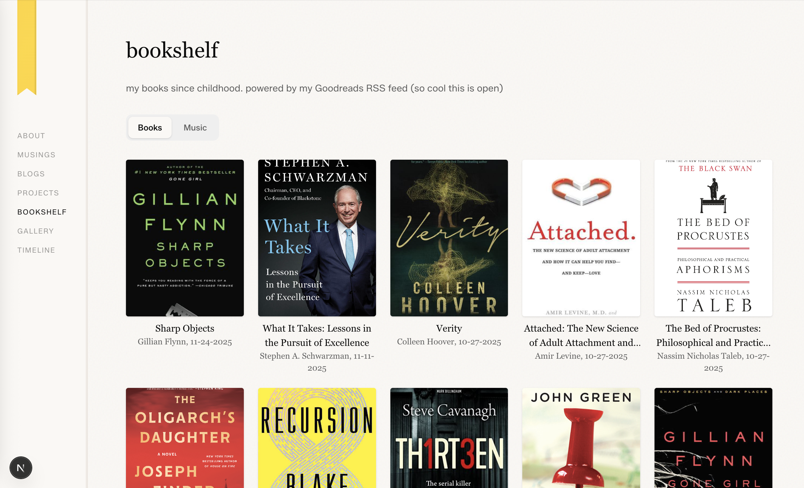 For Goodreads, I realized that they actually exposes a pretty nice RSS endpoint that formats all the books of read added in sequential data order as well as the reviews. And also includes the JPEG image for the book cover that I can then use some simple LLM calling to clean up and download the image and then put it in the relevant folders and HTML files for my website.